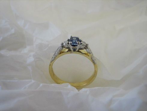 Oval Ceylonese sapphire. 5 x 3mm or larger, diamonds to suit sapphire. basic hand made style with options on the shoulders. Price on inquiry.